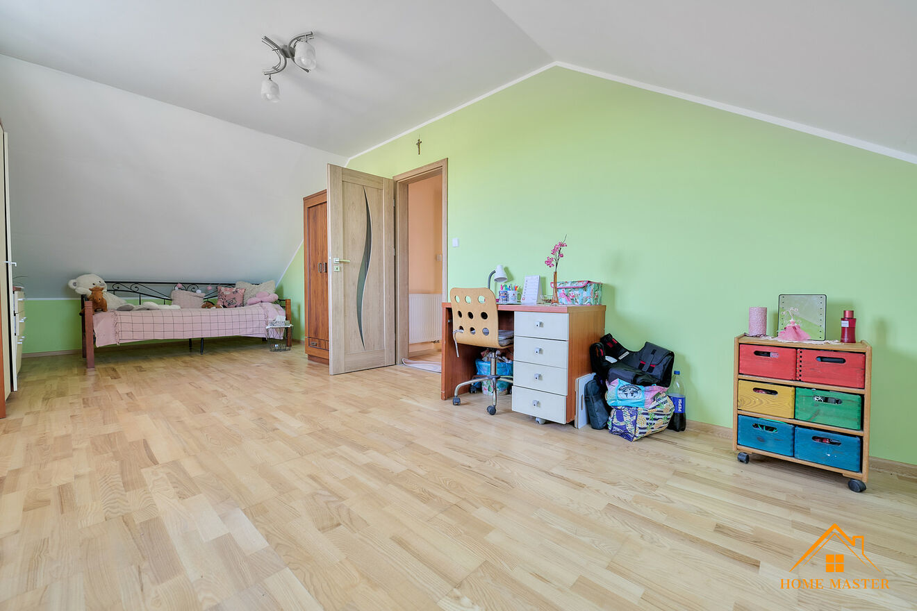 W domu znajduje się 6 pokoi: 3 na parterze i 3 na poddaszu użytkowym, 2 łazienki (na parterze z